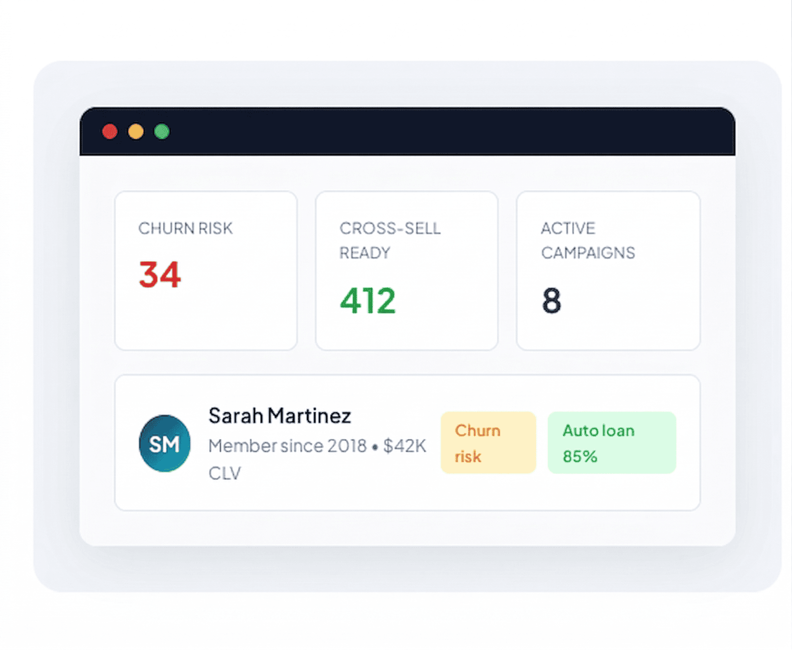 Unified profiles with churn risk, lifetime value, and product propensity scores for every member.
